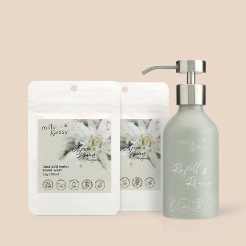 As with the entire Milly & Sissy range, this hand wash is vegan, cruelty free, hypoallergenic so great for those with sensitive skin, and leaves you with zero waste as the sachet is compostable.